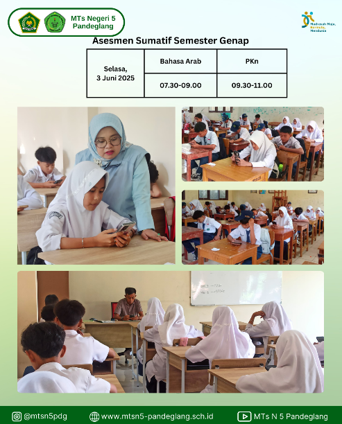 Pelaksanaan Asesmen Sumatif bagi Peserta Didik Kelas VII dan VIII yang dilaksanakan mulai tanggal 26 Mei sampai 9 Juni 2025 adalah momen penting dalam perjalanan pendidikan mereka. Asesmen ini bertujuan untuk mengevaluasi pemahaman, keterampilan, dan pencapaian siswa dalam berbagai bidang keterampilan dan pengetahuan yang telah dipelajari selama masa belajar.